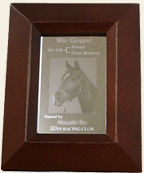 愛馬が優勝した際には記念写真をお届けします。オリジナルフォトスタンドに入れてお楽しみください。