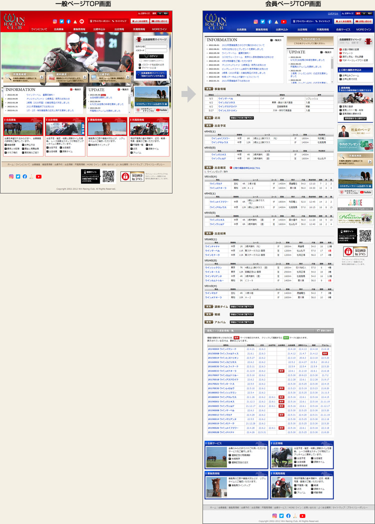 出資馬やお気に入りの馬を登録しておくことで、TOP ページからダイレクトに目的とする馬の情報が閲覧できたり、メールによる情報配信がご利用になれます ( 愛馬情報 )。 また、登録情報の変更機能など、会員の皆様により便利にお使いいただける機能をご提供しております。